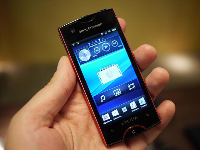 При таких небольших размерах разрешение покрытого защитным минеральным стеклом экрана осталось стандартным для Android-флагманов компании - 854x480 точек. Из-за этого дисплей очень четкий, находится, скажем так, на полпути к RetinaDisplay iPhone 4 (плотность пикселей на дюйм в SonyEricsson не сообщили). Единственный недостаток - на использованном в ходе презентации образце дисплей показался темноват, но, возможно, все дело в настройках яркости.