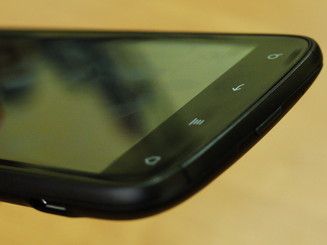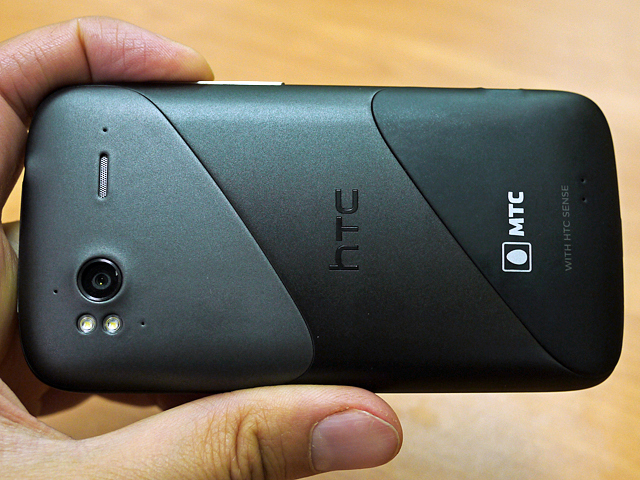 Внешне Sensation больше напоминает не Desire HD, а подросший Desire S. Анфас девайсы вообще отличаются лишь размером - у Sensation та же вытянутая горизонтально решетка динамика, аналогичные сенсорные кнопки, там же расположенный глазок фронтальной камеры, те же скругленные формы. Сзади конфигурация металлической центральной части крышки и пластиковых панелей сверху и снизу у Sensation отличается от Desire S, однако материалы те же самые - алюминий и бархатистый на ощупь, не царапающийся и не собирающий отпечатки пальцев качественный пластик.