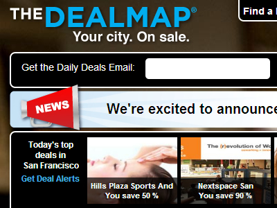 Dealmap был запущен в мае прошлого года. Сервис получает данные о скидках и упорядочивает их по месторасположению от более чем 450 источников. Доступ к этой информации пользователи могут получить через сайт Dealmap или приложение для смартфонов.